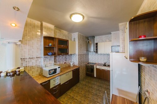 В каждой квартире имеется в наличии:• Двухкамерный холодильник • Стиральная машина • Микроволновая печь и электрический чайник • Телевизор • Сплит-система • Утюг и гладильная доска • Фен • Бесплатный безлимитный Wi-Fi |